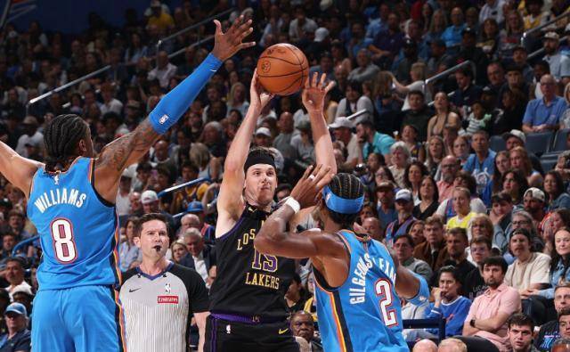 湖人却没有做好对抗联盟防守第一球队的准备。面对雷霆颇具侵略性的防守,湖人将士集体不适应,疯狂出现失误,被雷霆不断反击得分。湖人失误的源头始于里夫斯,他在首节还剩10分29秒被杰伦·威廉姆斯抢断,多尔特反击三分命中。