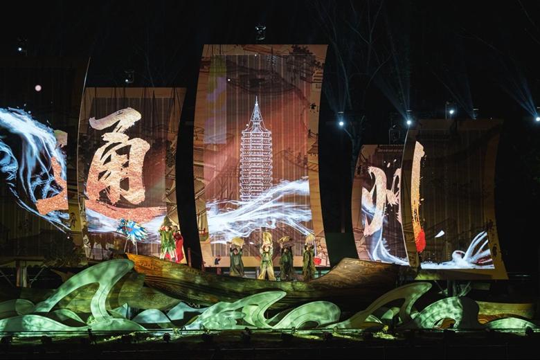 夜幕降临,沿岸建筑化作巨幕光影,船工号子、漕运盛景、运河人家、南北交融的历史图景依次再现。乘船而行,实现“人在船上坐,船在画中游”,沉浸式触摸大运河千年文脉温度。